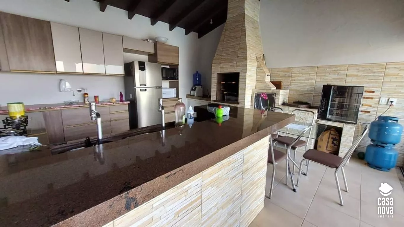 COZINHA, SALA, 2 QUARTOS SOCIAL, 1 SUITE, 1 SUITE COM CLOSET, 1 BANHEIRO, 1 LAVABO, 1 ESCRITORIO, ESPAÇO GOURMET COM CHURRASQUEIRA E FOGÃO A LENHA, PISCINA COM AQUECIMENTO SOLAR, AREA DE SERVIÇO.