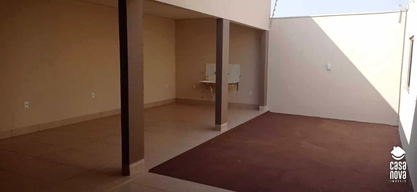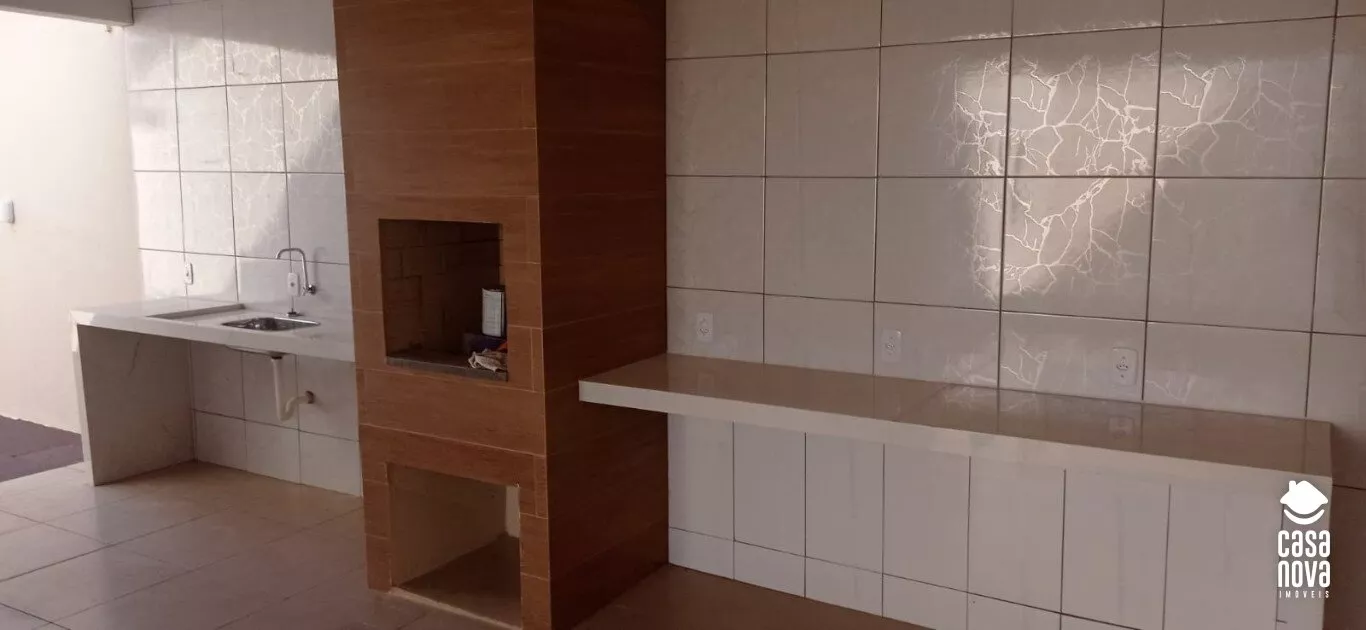 3 Quartos sendo 1 suíte; Banheiro social; Sala; Cozinha; 2 Garagem; Área gourmet;